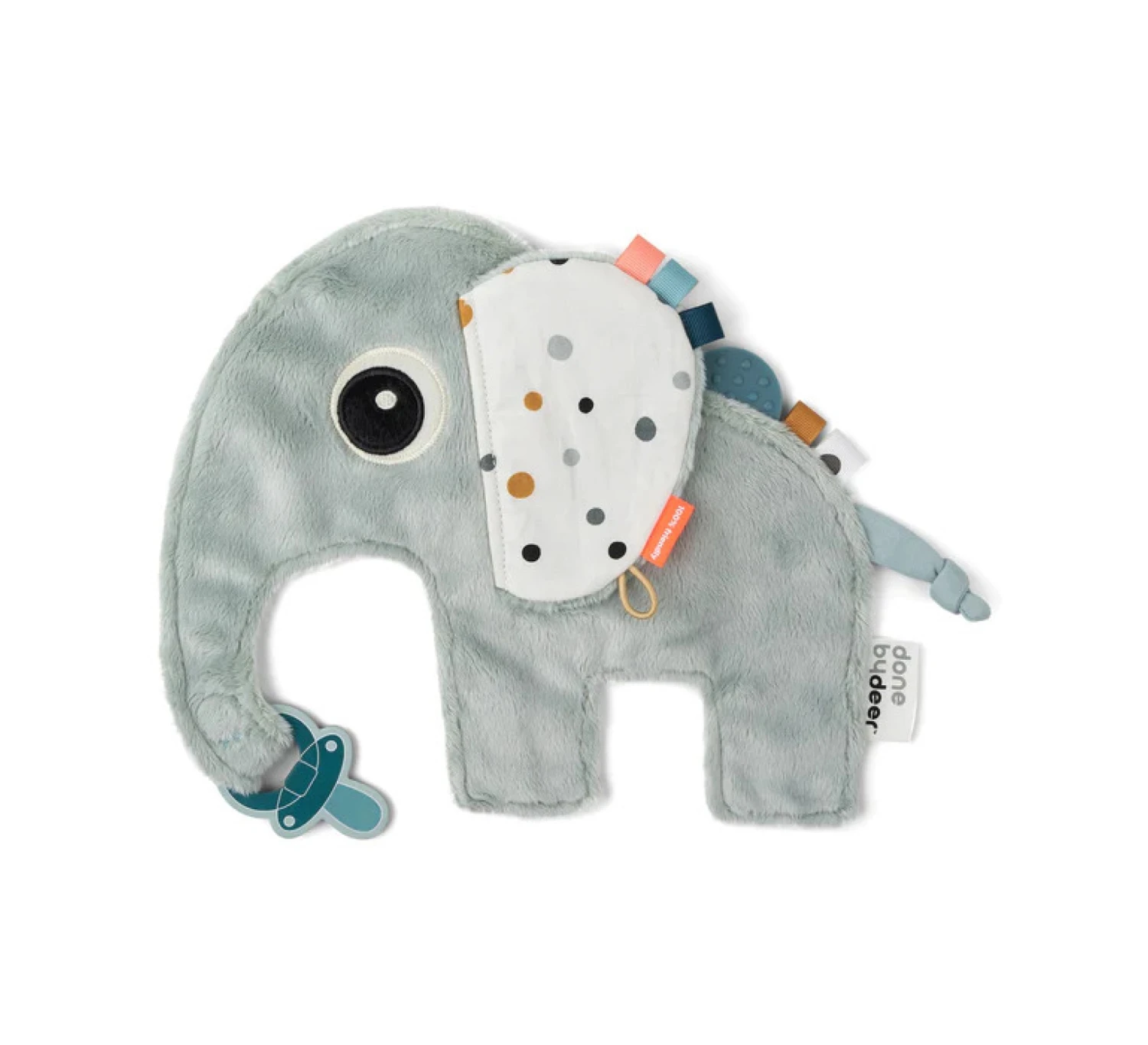 Dit heerlijk zachte knuffeldoekje is voorzien van een speenkoordje en diverse labels waar je kleintje mee kan spelen.
