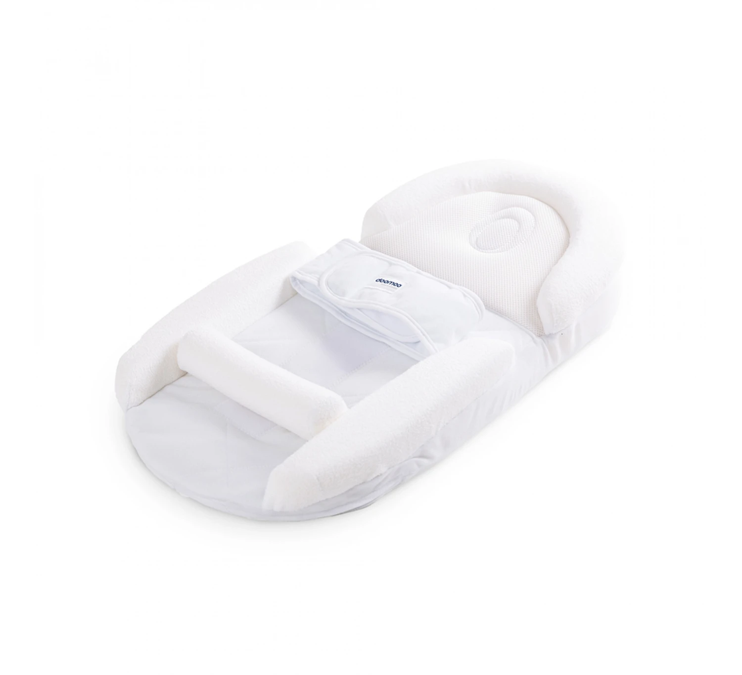 Het doomoo slaapnestje is de ideale oplossing om je baby knus op zijn rug te laten slapen en een optimale slaapkwaliteit te garanderen. Specialisten stemden het ontwerp af op de lichaamsbouw van baby’s, zodat ze in de beste omstandigheden kunnen slapen. De helling bevordert een goede spijsvertering en een comfortabele ademhaling, het visco- elastische schuim in het bovenste geldeete vermindert het risico op een afgeplat hoofd bij rugligging. De gordel houdt de baby veilig op zijn plaats en geeft een geruststellend en geborgen gevoel. Met de onderste, verwijderbare rol kun je baby’s beentje in foetushouding leggen waardoor krampjes verminderen.