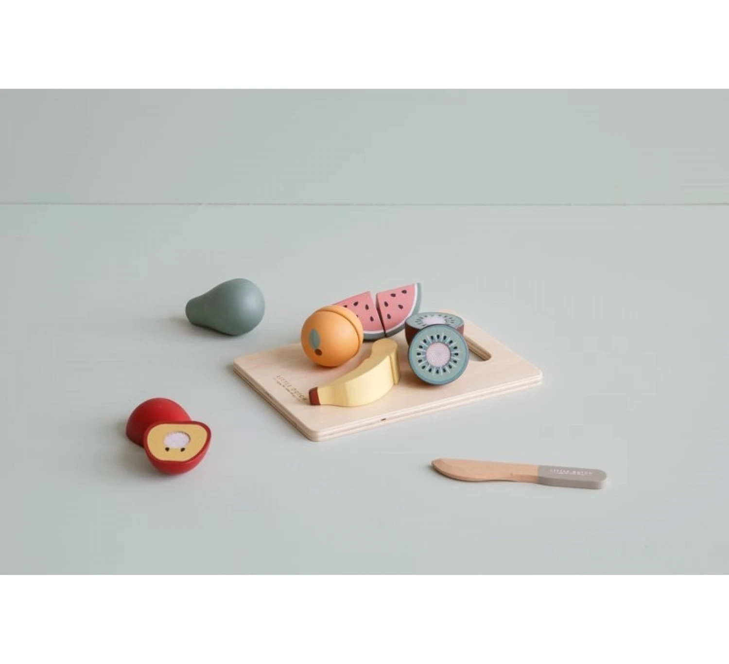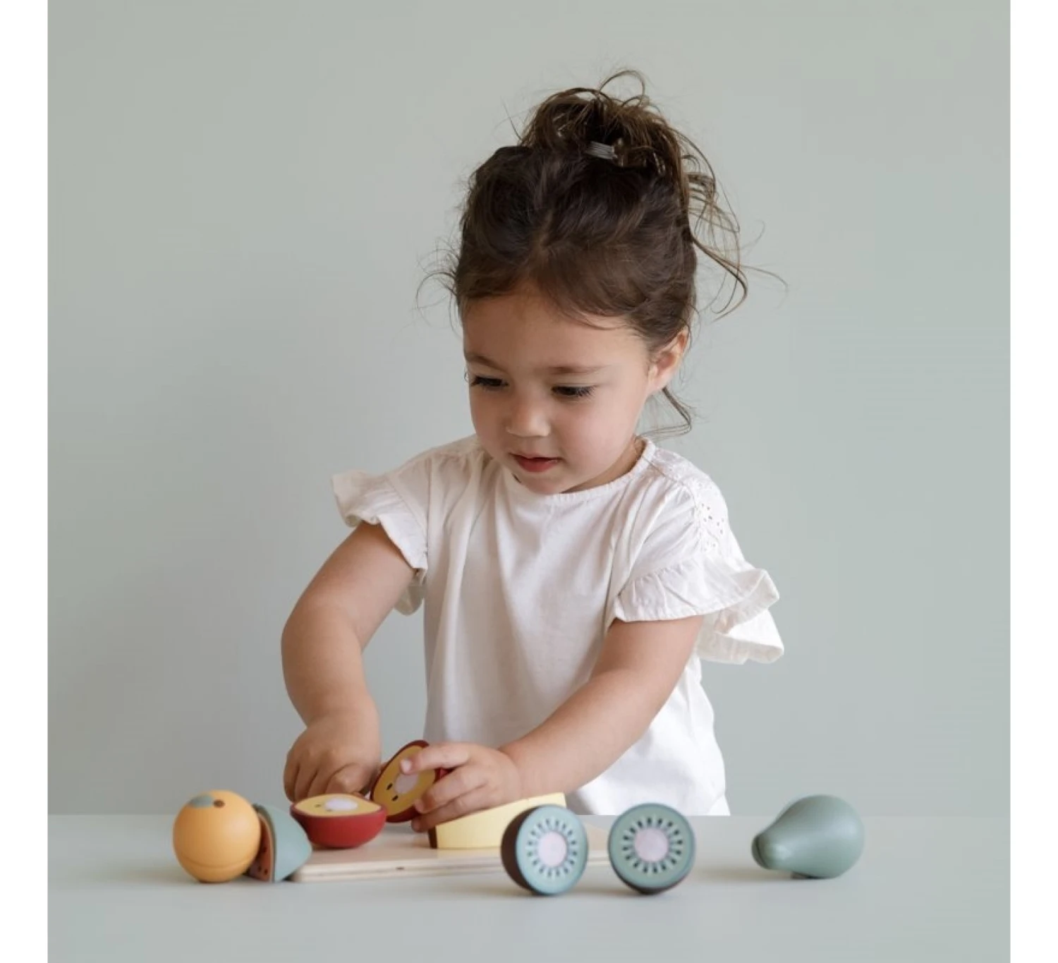Vindt jouw kleintje het geweldig om te te kijken achter in de keuken? Met deze set van Little Dutch kan jouw kleintje lekker oefenen met het snijden van fruit. De snijset bestaat uit een houtenplank en 6 verschillende stukken fruit en een houtenmes. Ieder stuk fruit heeft klittenband zodat jouw kleintje het fruit gemakkelijk los en vast kunt maken.