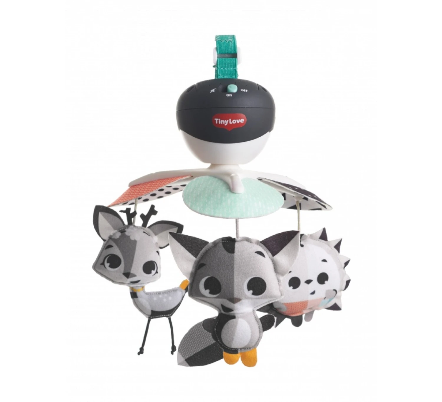 Laat je inspireren – thuis en onderweg. De Magical Talesâ„¢ Take Along Mobileâ„¢ is niet alleen geweldig om naar te kijken, het speelt ook vijf verschillende muzikale deuntjes. Dus het zou niet verrassend zijn als je babytje er geen genoeg van kan krijgen. Gelukkig is het supereenvoudig om te bevestigen op reiswiegjes, kinderwagens, bedjes en meer, zodat je baby de vrijheid heeft om altijd geïnspireerd te zijn en te groeien in vaardigheden zoals taal en communicatie, zintuigen en emotionele intelligentie. Bovendien zorgen de zoete zwart-witte karakters van de mobiel voor een visuele stimulatie van je baby en ze passen perfect bij een moderne inrichting. De Magical Tales Take Along Mobileâ„¢ speelt 30 minuten lang melodieën zonder te herhalen. De mobiel kan op twee verschillende manieren bevestigd worden; met een clip of klittenband strip.