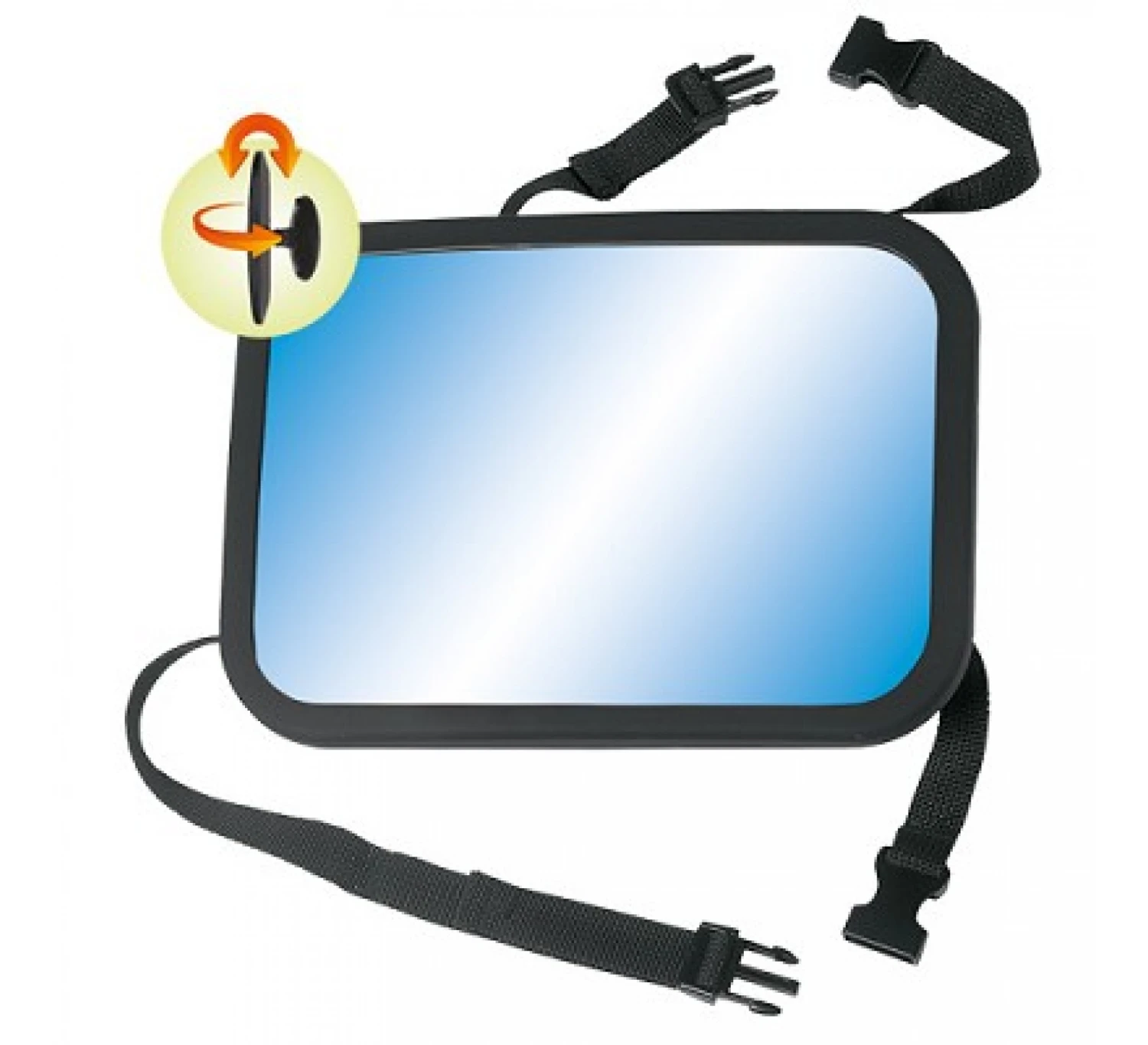 Met de Verstelbare Spiegel van A3 Baby & Kids kun je tijdens de autorit contact houden met je kindje op de achterbank en andersom. De spiegel is groot genoeg waardoor je kindje ook zichzelf kan zien. Dankzij de bolle ronding van de spiegel ontstaat er een extra grote kijkhoek, zo hoeft je kindje niks te missen tijdens de autorit. De breukvaste spiegel is 180 graden verstelbaar voor optimaal zicht. Door middel van twee riempjes kan de spiegel stevig aan de hoofdsteun worden gemonteerd.